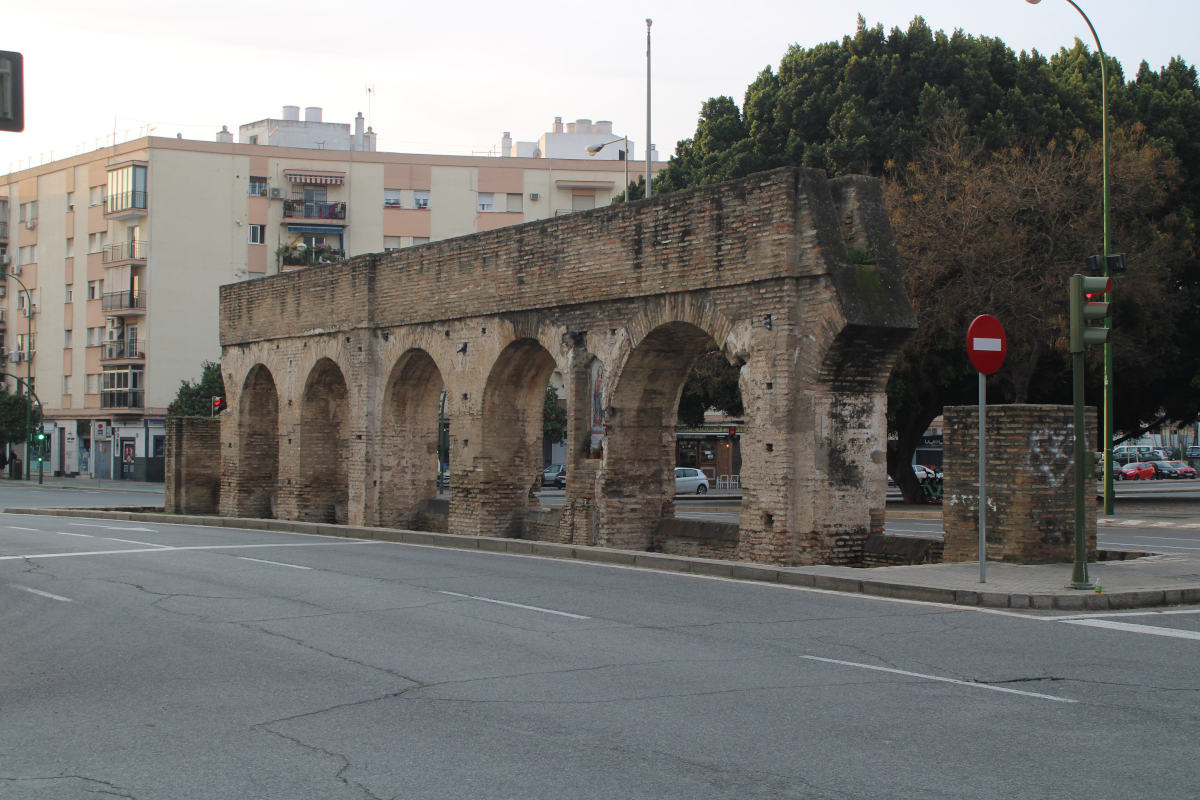 Estos arcos se encuentran integrados en el trazado urbano, entre aceras y calzadas, y constituyen uno de los pocos elementos de arqueología romana y andalusí visibles a pie de calle en la Sevilla contemporánea. - Avenida de Andalucía