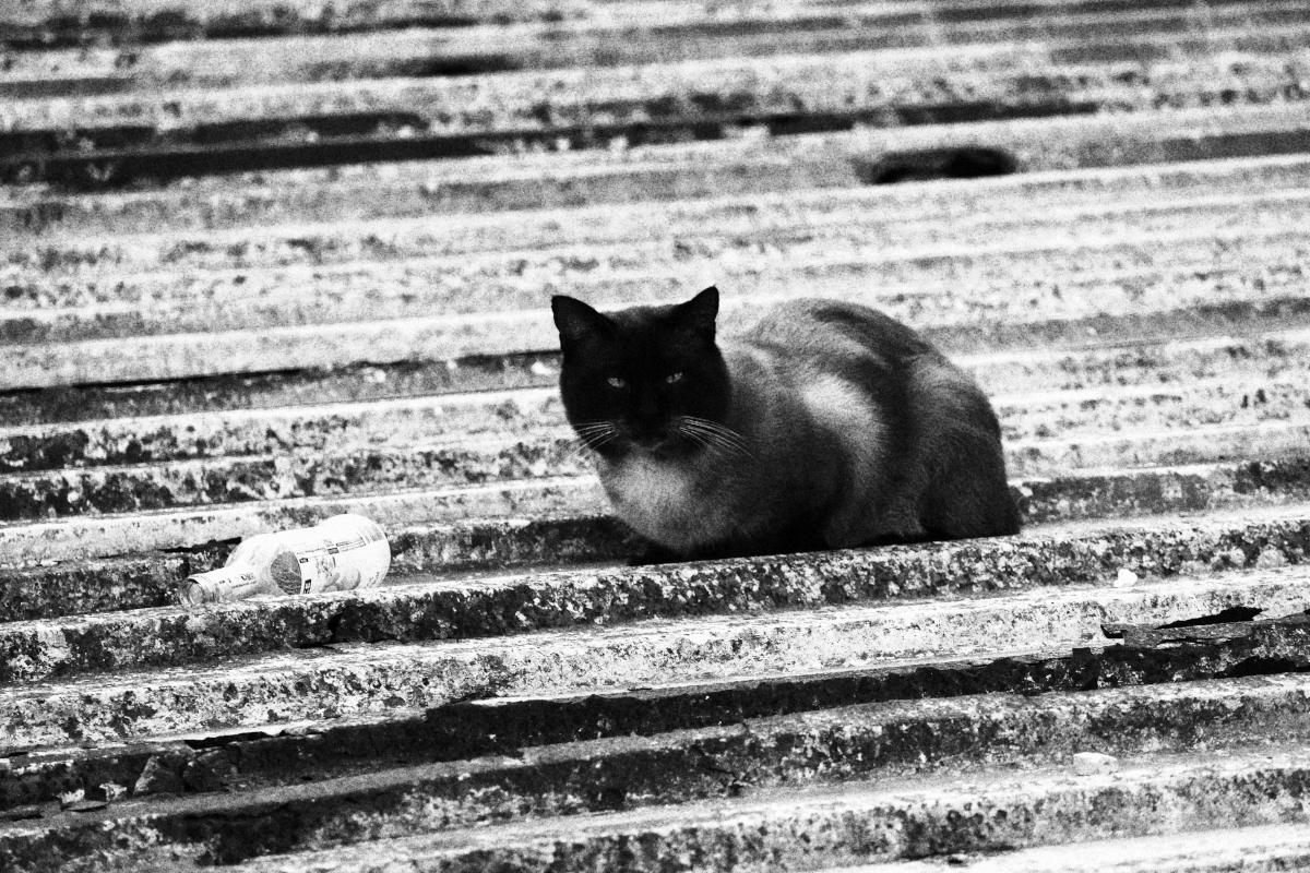 Sin embargo, la escena ante él desafiaba la lógica del accidente. Allí, sobre la frialdad estriada del techo, reposaba un gato de pelaje oscuro y extremidades cenicientas, un siamés de porte aristocrático que desentonaba con la suciedad del entorno. El animal no maulló; sus ojos, dos hendiduras de hielo pálido, estaban fijos en Elías con una inteligencia inquietante, casi humana. Junto al felino, rodando ligeramente con las ráfagas de viento, yacía una botella de vidrio vacía. Parecía un bodegón macabro dispuesto por una mano invisible. Elías se agachó, sintiendo la humedad calar sus rodillas. La botella no tenía etiqueta, pero el cristal atrapaba la escasa luz de la tarde como si contuviera un secreto tóxico. El gato, inmóvil como una gárgola, parecía custodiar la evidencia. Si aquel animal pudiera hablar, pensó Elías, la ciudad entera temblaría. Pero los gatos, al igual que los muertos, saben guardar silencio.